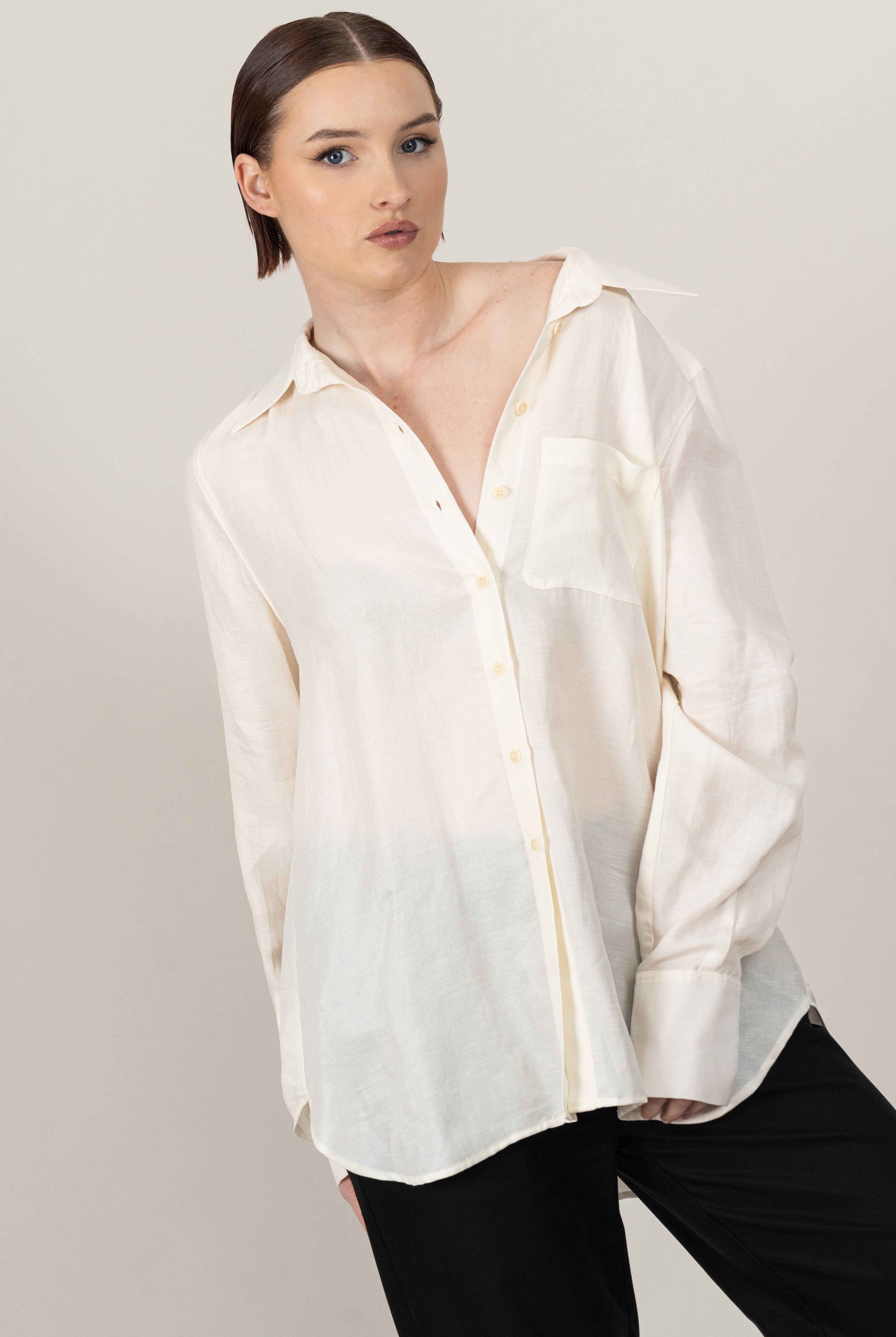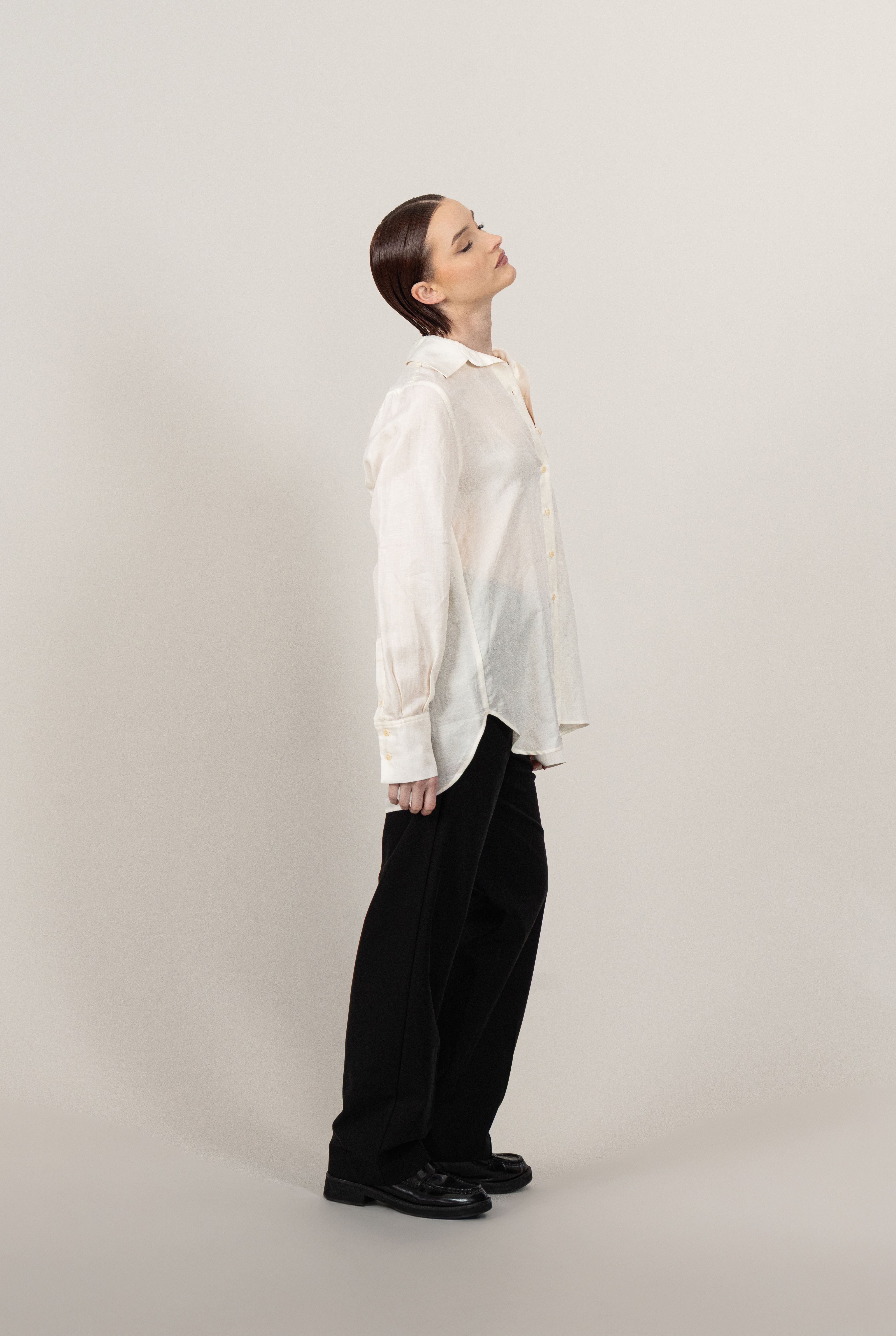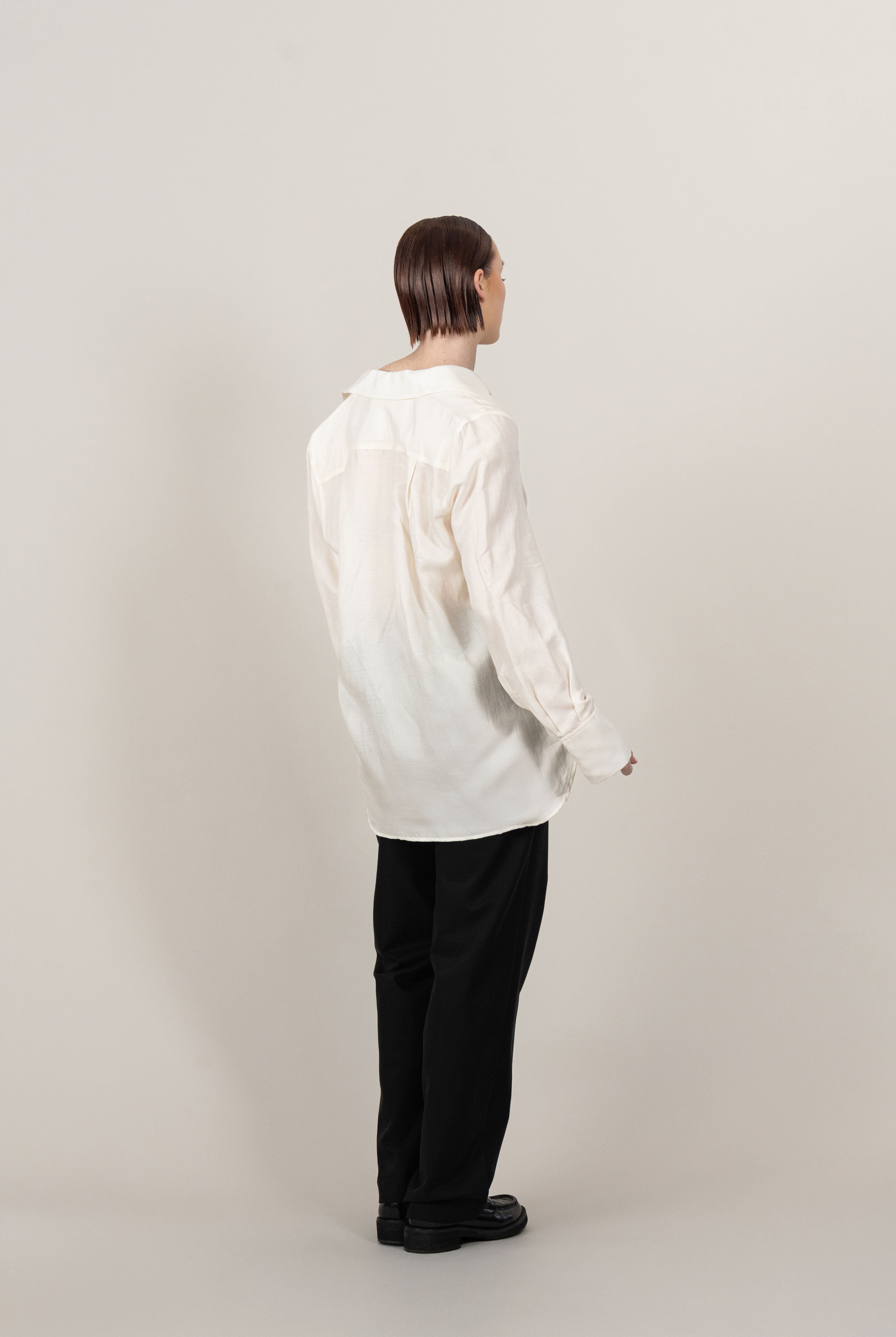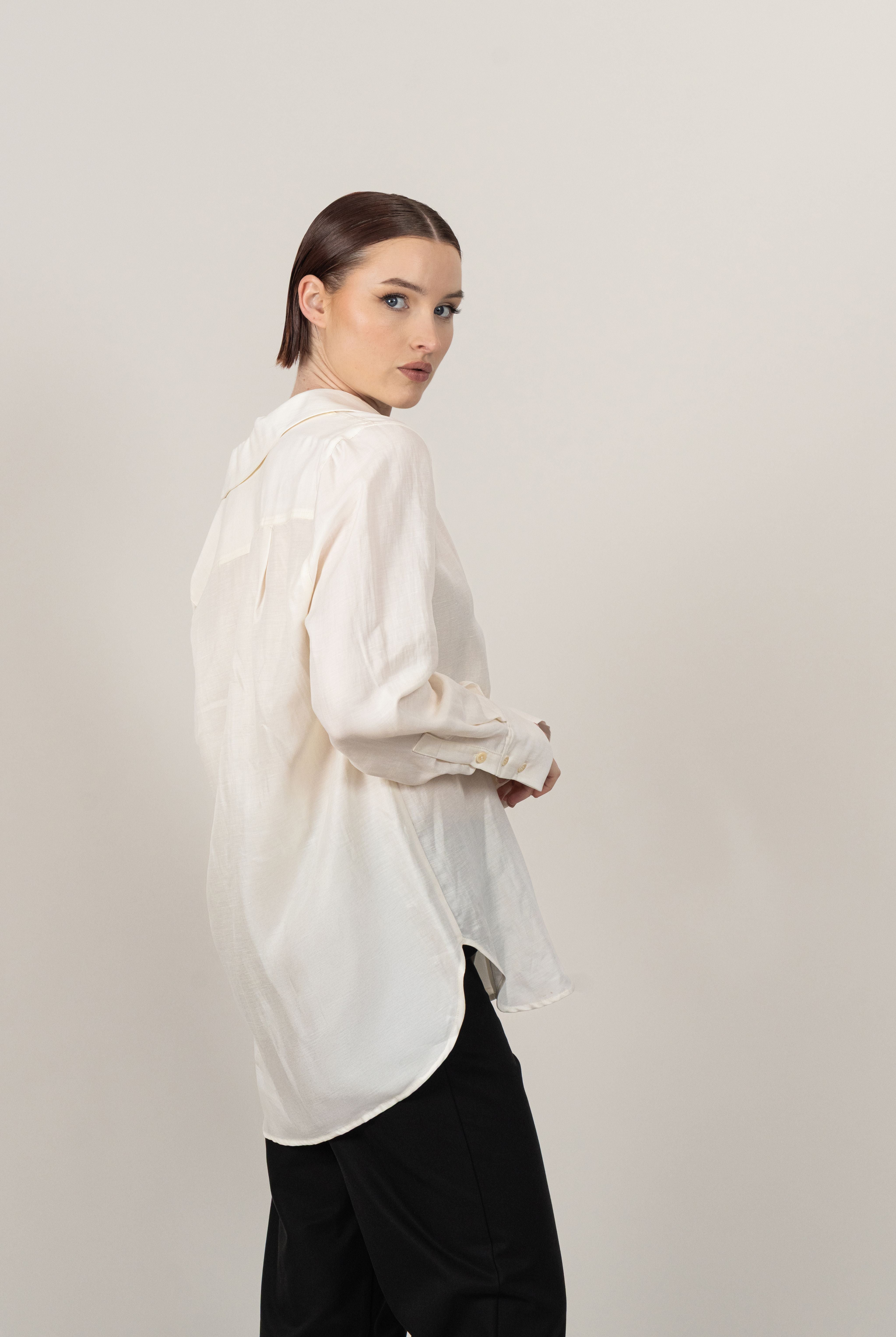 The Relaxed Shirt is crafted from luxuriously soft, buttery fabric, offering an effortless blend of comfort and refined elegance. Designed with a relaxed yet tailored silhouette, it features our signature vegetable ivory buttons, adding a subtle touch of sophistication. This versatile piece is a wardrobe essential, perfect for elevating any ensemble.